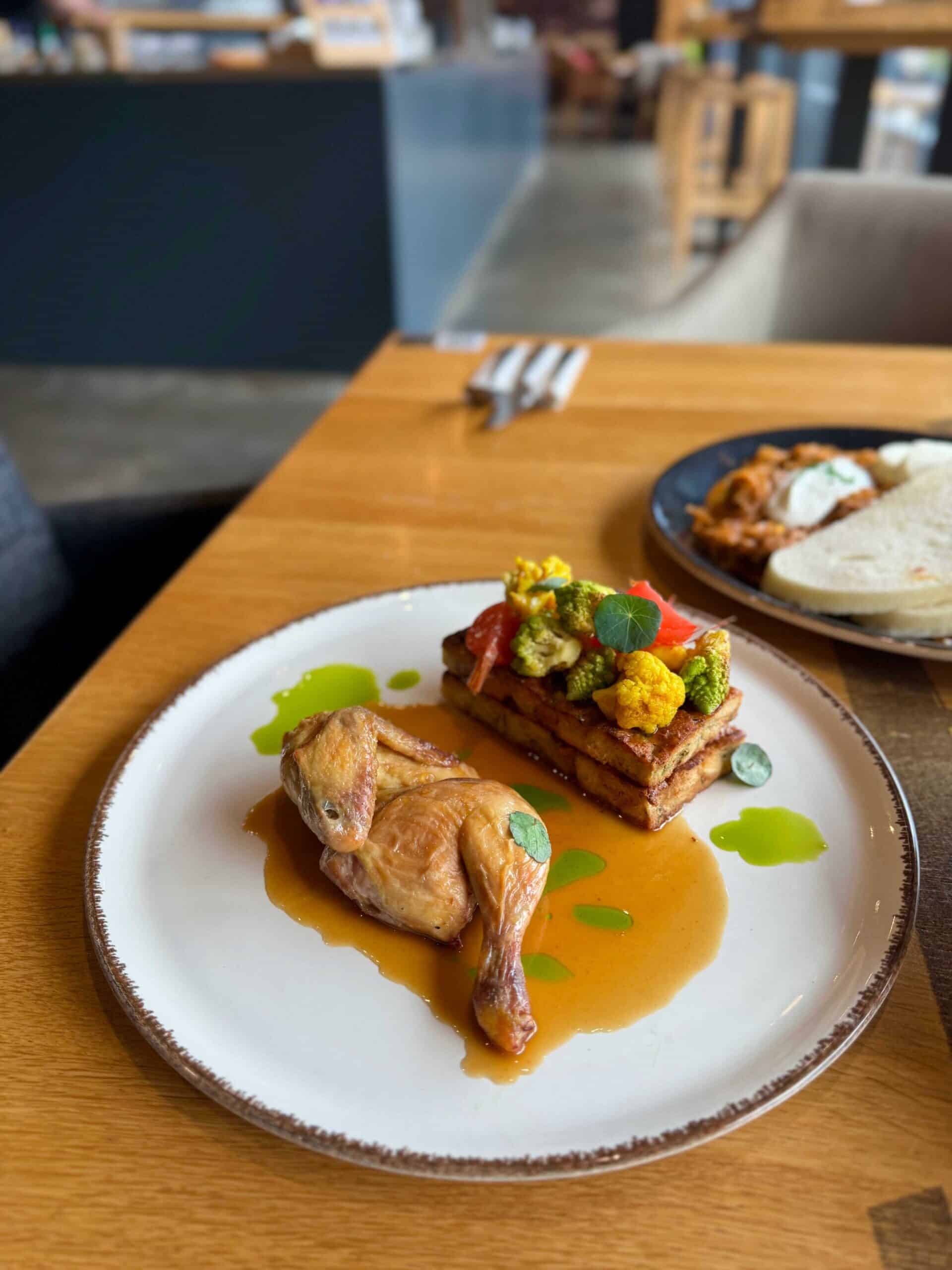 Kukuřičné baby kuřátko, velikonoční nádivka, kopřivy, jarní zelenina, kuřecí jus (omáčka z výpeku) 299,-
